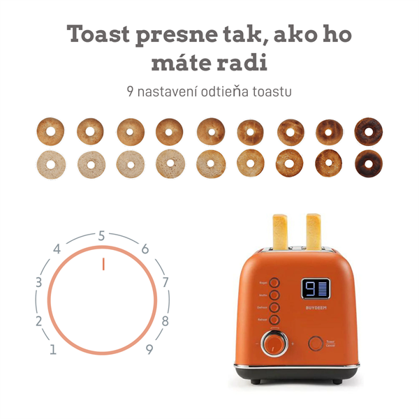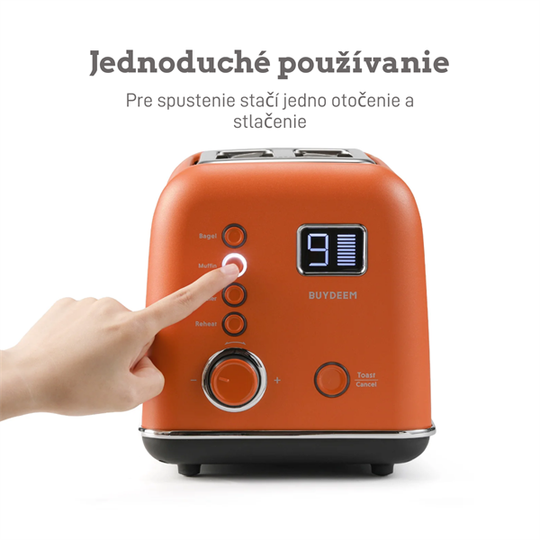 Jedno otočenie a jedno stlačenie šetrí čas a námahu. Tlačidlá s kontrolkou LED a zrozumiteľný ovládací prvok režimu. Naštartujte deň dokonalou hriankou z hriankovača BUYDEEM. Retro kovový hriankovač na 2 hrianky s extra širokými otvormi na opekanie rôznych bagelov a muffinov. Vychutnajte si teplý chlieb, bagel alebo ho použite na prípravu chutného sendviča.