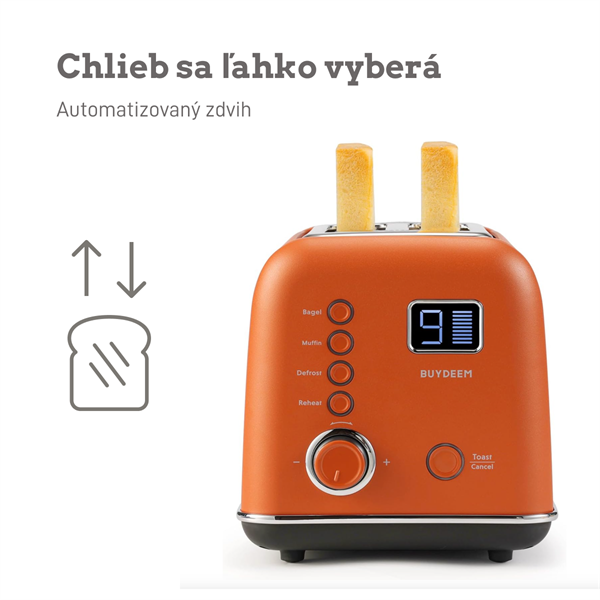 BUYDEEM Automatický kovový hriankovač na 2 plátky, model DT730E, farba koi červená, EU DT730E-KR/EU