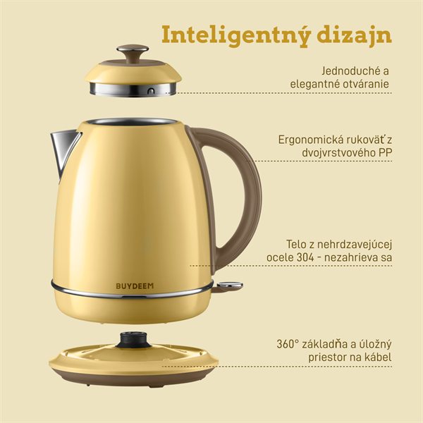 BUYDEEM Elektrická kanvica, model K640, farba jemná žltá, EU K640-MY/EU