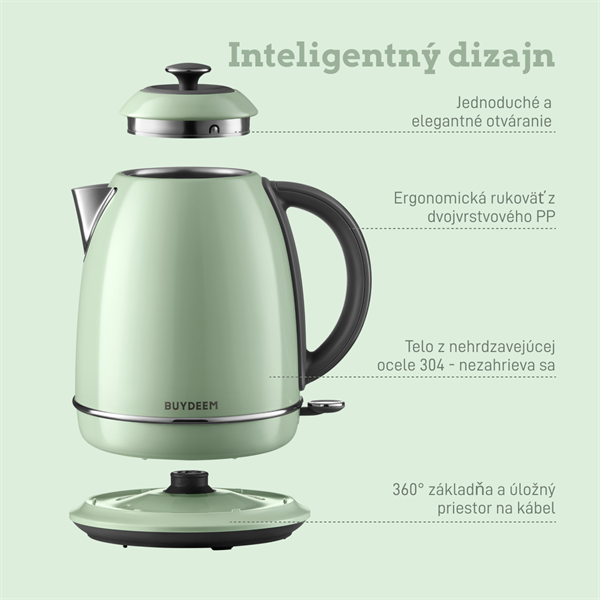 BUYDEEM Elektrická kanvica, model K640, farba zelená, EU K640-CG/EU