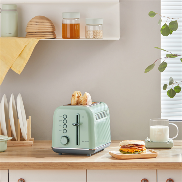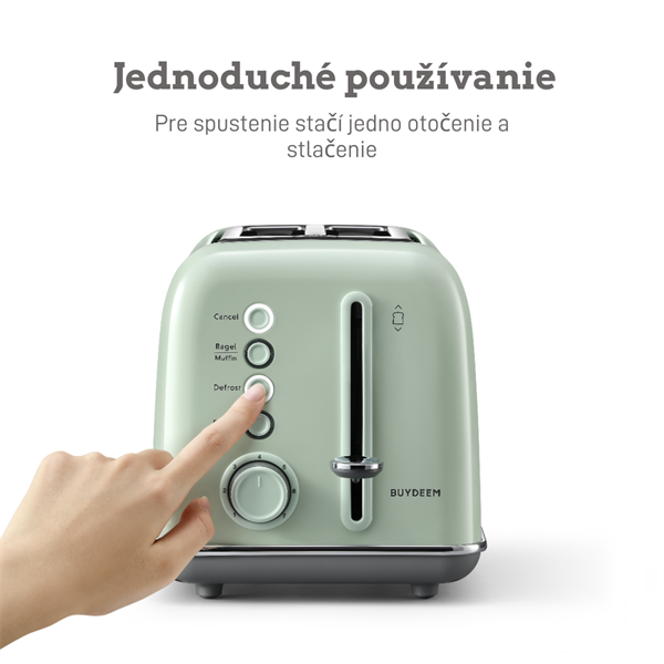 Jedno otočenie a jedno stlačenie šetrí čas a námahu. Tlačidlá s kontrolkou LED a zrozumiteľný ovládací prvok režimu. Naštartujte deň dokonalou hriankou z hriankovača BUYDEEM. Retro kovový hriankovač na 2 hrianky s extra širokými otvormi na opekanie rôznych bagelov a muffinov. Vychutnajte si teplý chlieb, bagel alebo ho použite na prípravu chutného sendviča.