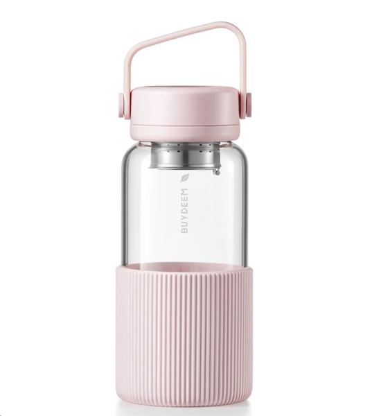 BUYDEEM Prenosná sklenená čajová fľaša 350 ml, model CD1008, farba fialová kvetina CD1008-PP
