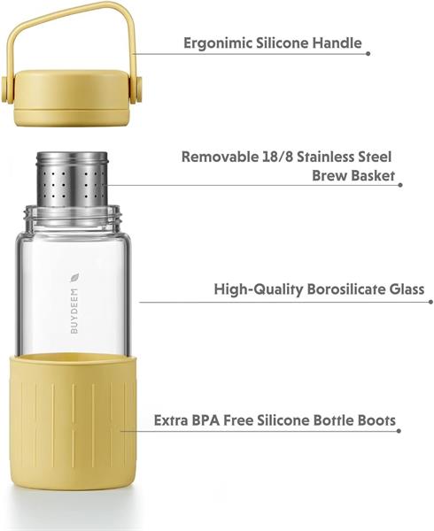 BUYDEEM Sklenená čajová fľaša 300 ml, model DG42, farba jemná žltá