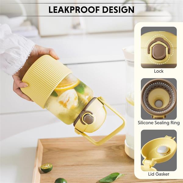 The use of glass and plastic makes the bottle exceptionally durable and allows it to be used for a long time, significantly reducing the amount of plastic waste. The borosilicate glass used in the bottle does not chemically react with beverages, ensuring that drinks retain their natural taste and are free from contaminants. Additionally, the bottle can be easily recycled, further enhancing its eco-friendliness.