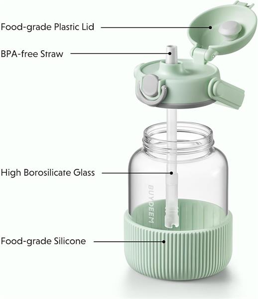 The bottle is made of high-quality borosilicate glass, which is resistant to extreme temperatures. This glass is also free from harmful chemicals, making it safe for health. The straw is made of durable plastic that is food-safe. It is easy to clean and can be reused multiple times.