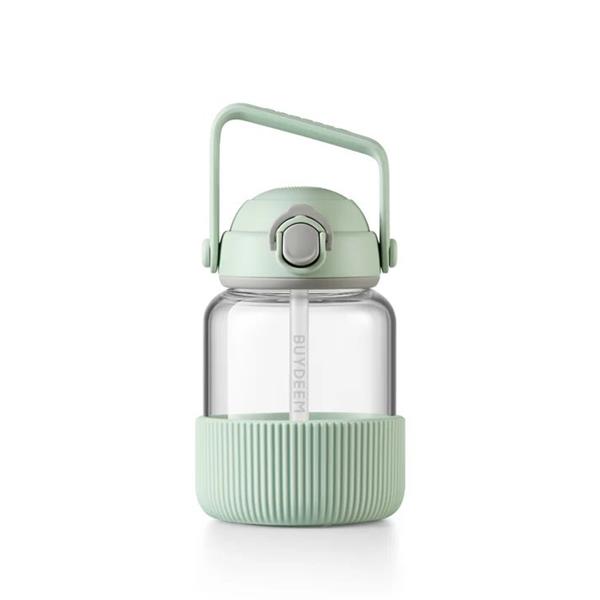 BUYDEEM Sklenená fľaša so slamkou 800 ml, model DG78, farba útulná zelená DG78-CG