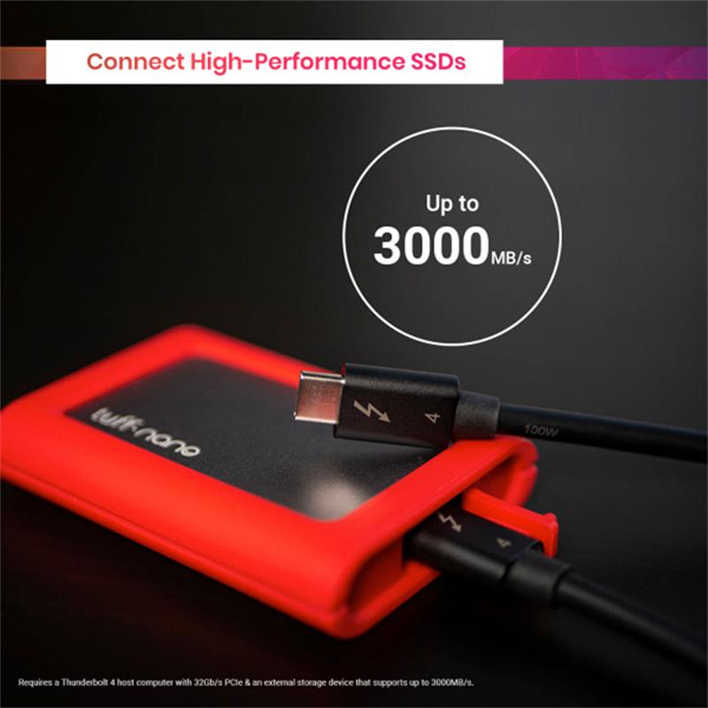 Thunderbolt 4 / USB-C kábel - kvalitný univerzálny prepojovací kábel - vyrobený z prvotriednych materiálov - ponúka 100% spoľahlivosť a flexibilitu - podporuje nabíjanie s výkonom 100 W - prenosová rýchlosť dát až 40Gb/s - poskytuje rozlíšenie 8K na jednom monitore - obsahuje natívnú podporu PCle pre vyššiu rýchlosť a výkon s prenosovou rýchlosťou 32 Gb/s - dĺžka kábla 2 metre - plne kompatibilné s TB 3, TB 2, USB4, USB 3.2, 3.0, USB 2.0 a USB-C zariadeniami
