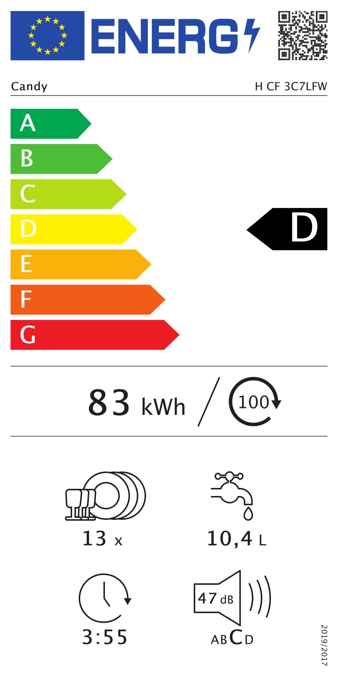 Candy umývačka umyvacka riadu 60cm H CF 3C7LFW