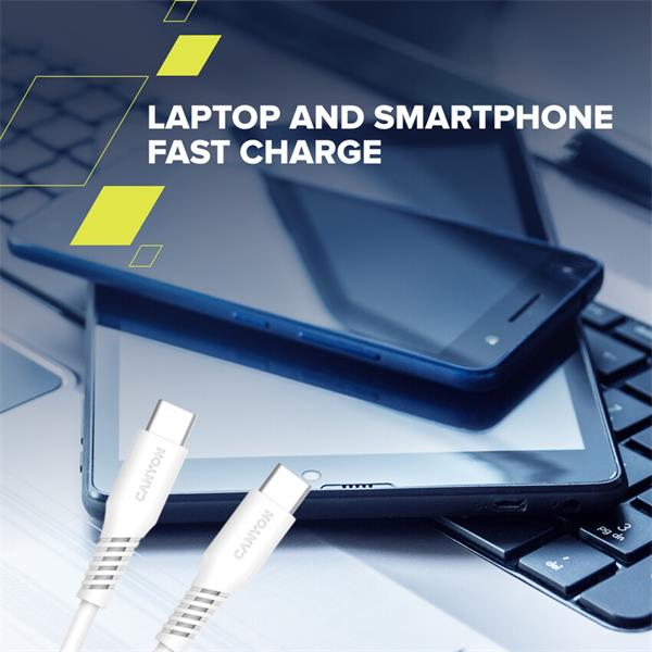 • Canyon CC60SC20, 2 m kábel, USB-C / USB-C, PD 60 W, 480 Mbps, biely CNS-CC60SC20W