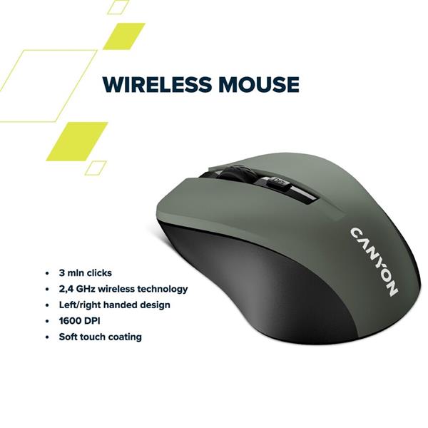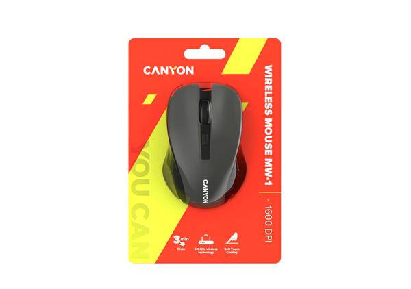 Canyon CNE-CMSW1G, Wireless optická myš USB, 800/1000/1200 dpi, šedo-čierna