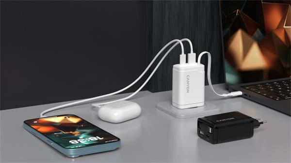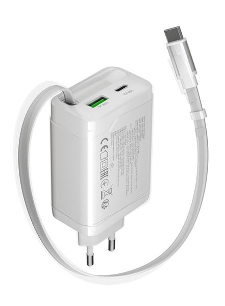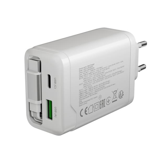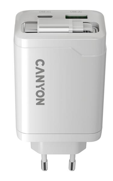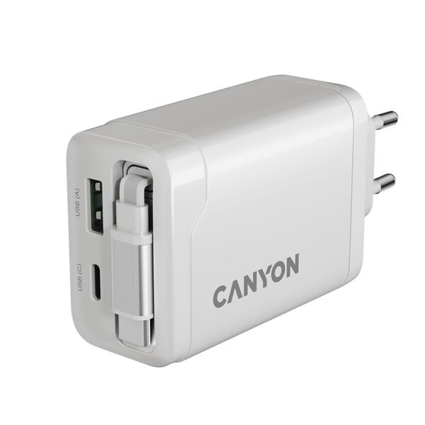 Canyon CNS-CURC65ACW, vysokorýchlostná univerzálna nabíjačka do steny s integrovaným 68 cm USB(C) káblom