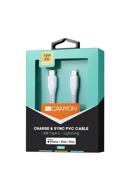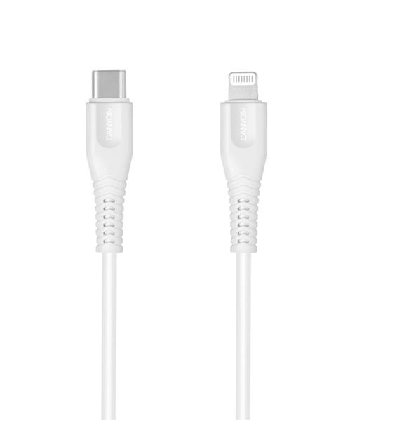 Canyon CNS-MFIC4W, 1.2m kábel USB-C / Lightning, 5V/2.4A, priemer 3.5mm, PVC, biely