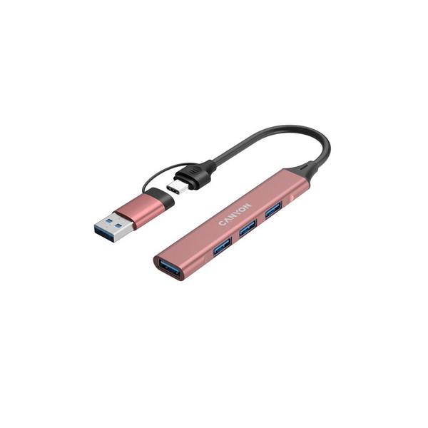Canyon DS-02, USB-C Hub, 4 porty, 3xUSB 2.0 480Mbps, 1xUSB 3.0, 5Gbps, USB-C/USB-A adaptér, ružová CNS-TDS02P