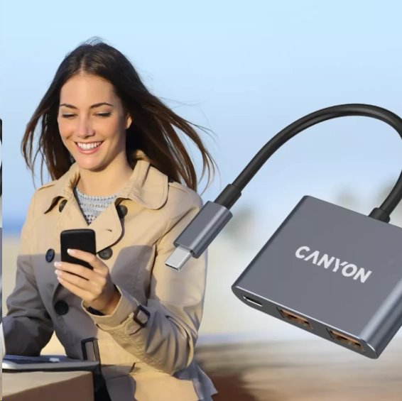 • Canyon DS-3, USB-C Hub, 3 porty, 2xUSB-A 10Gbps, 1xUSB-C 10Gbps, šedá CNS-TDS3