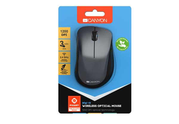 Canyon MW-11, Wireless optická myš Pixart 3065, USB, 1200 dpi, 3 tlač, čierna CNE-CMSW11B