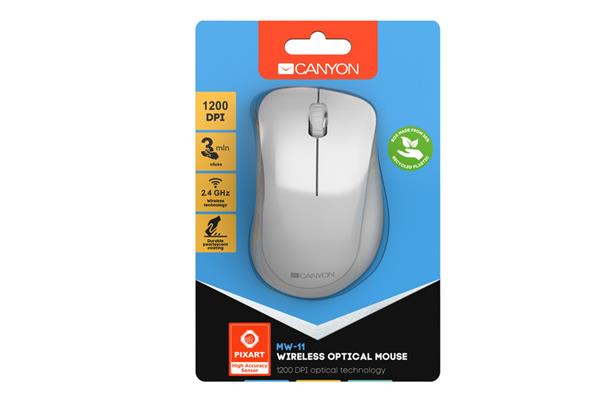 Canyon MW-11, Wireless optická myš Pixart 3065, USB, 1200 dpi, 3 tlač, perleťovo biela CNE-CMSW11PW