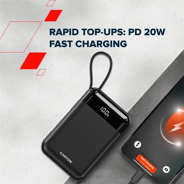 Canyon OnPower 204, Powerbanka, 20 000 mAh, 20 W rýchle nabíjanie, USB-C/USB-A CNS-CPB204B