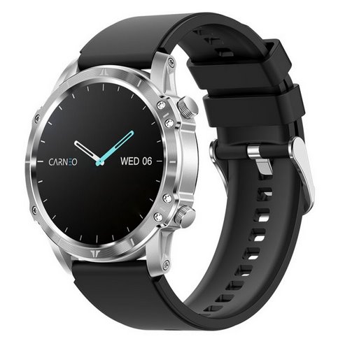 Všechny údaje o vaší aktivitě Moderní outdoorové fitness chytré hodinky Carneo ADVENTURE HR+ druhé generace v elegantní stříbrné barvě mají kulatý barevný displej SUPER AMOLED chráněný extrémně tvrdým sklem Gorilla. Umožňují měřit srdeční tep, stres, BMI, ujetou vzdálenost, sledovat spálené kalorie nebo kvalitu spánku. Obsahují 380mAh baterii s výdrží až 5 dní. Podle certifikace IP67 jsou odolné proti vodě a prachu. Jsou kompatibilní s operačními systémy iOS a Android. Hodinky mají na dotek příjemný silikonový řemínek v černé barvě, který lze vyměnit za řemínek v jiné barvě nebo kožený či kovový a změnit tak sportovní vzhled hodinek za manažerský. Vkusný outdoorově-luxusní design lze snadno kombinovat s oblekem nebo volnočasovým oblečením. Hodinky i aplikace jsou kompletně v češtině, takže si s nimi určitě dobře porozumíte. PRÉMIOVÉ kovové provedení Prémiové kovové tělo s tloušťkou pouhých 11 mm a 1,43" displej Super Amoled vám poskytne křišťálově čistý obraz a zajistí vynikající čitelnost za všech světelných podmínek. SPORT pod drobnohledem Může měřit až 98 sportovních aktivit 98 sportovních režimů (chůze, běh, lezení, jízda na kole, basketbal, bedminton, fotbal, eliptický trenažér, stolní tenis, švihadlo, tenis, baseball, kriket, golf, běžecký pás, Bojová umění, Box, Judo, Karate, Kickbox, Šerm, Taekwondo, Zápas, Aeorobic, Flexibilita, Gymnastika, Maraton, Pilates, Volný styl, Atletika, Kardio, Posilování, Turistika, Stac. Cyklistika, Plavání a další. ) Přehledně zobrazovat všechny potřebné údaje během aktivity, jako je aktuální tepová frekvence, vzdálenost, spálené kalorie, celkový čas aktivity, nebo zobrazit trasu na mapě díky GPS v telefonu. VOLÁNÍ přímo z hodinek Potřebujete přijmout hovor a mobilní telefon máte v kapse nebo v tašce? Díky funkci BT volání můžete volat přímo z hodinek, aniž byste museli manipulovat s mobilním telefonem. Zprávy a oznámení se samozřejmě zobrazují přímo na hodinkách, takže máte přehled o všem důležitém, co se děje, přímo na zápěstí. MĚŘENÍ životních funkcí Měření tepové frekvence během sportovní aktivity, včetně zobrazení zón tepové frekvence. Monitorování srdeční frekvence po celý den 24 hodin denně, 7 dní v týdnu, a to i mimo sportovní aktivitu. Sledování spálených kalorií s možností nastavení denního cíle. Měření krevního tlaku a "nasycení" krve kyslíkem. Varování: Všechny naměřené údaje mají pouze informativní charakter a mohou se lišit od naměřených hodnot profesionálních přístrojů, proto je nelze považovat za závazné. Vlastnosti chytrých hodinek Carneo Adventure HR+ 2 generace Funkce Always on pro trvalé zobrazení číselníku Automatické měření tepové frekvence 24 hodin denně, 7 dní v týdnu Funkce tělesné energie Měření stresu Telefonování přímo z hodinek díky funkci BT volání Multisport (98 sportovních režimů) Měření krevního tlaku a okysličení krve Dlouhá výdrž baterie až 5 dní na jedno nabití Monitor kvality spánku Unikátní funkce kardio indexu Hlasový asistent