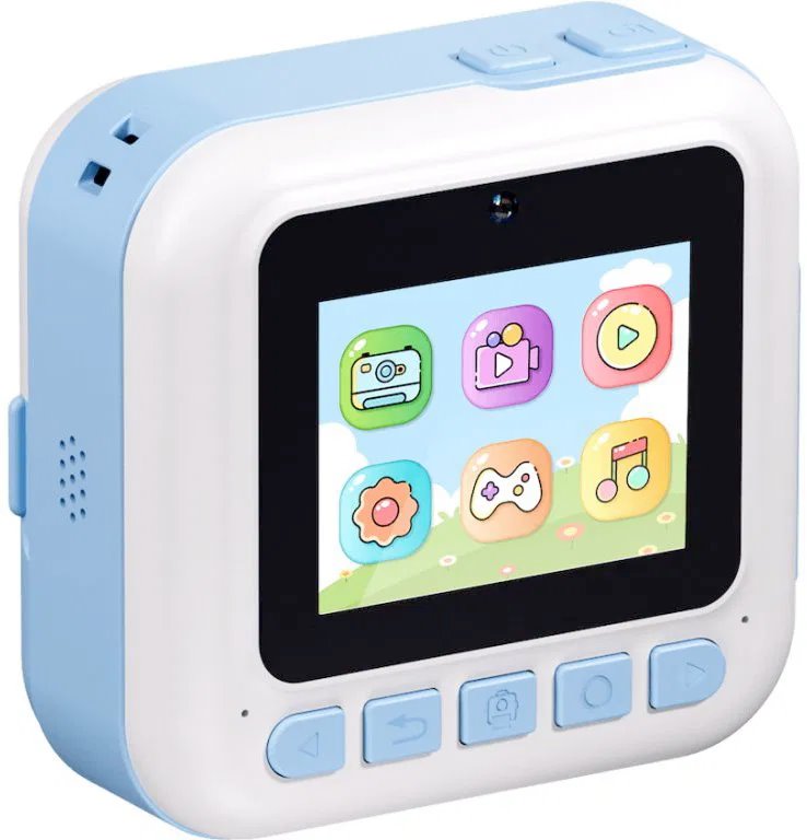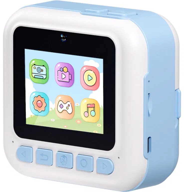 Instantný fotoaparát – kompatibilný s pamäťovou kartou micro SD, maximálna veľkosť SD karty 32 GB, napájanie zaisťuje USB-C, 2,4" displej, hmotnosť 220 g, modrá farba