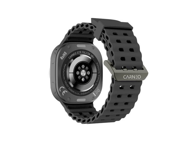 CARNEO GTR Falcon HR+ sú moderné  fitness hodinky v elegantnom metalicky čiernom prevedení so silikónovým remienkom, ktorý je príjemný na dotyk. Farebný SUPER AMOLED displej s vysokým jasom a funkciou always-on zobrazenia poskytuje skvelú čitateľnosť aj na priamom slnku.