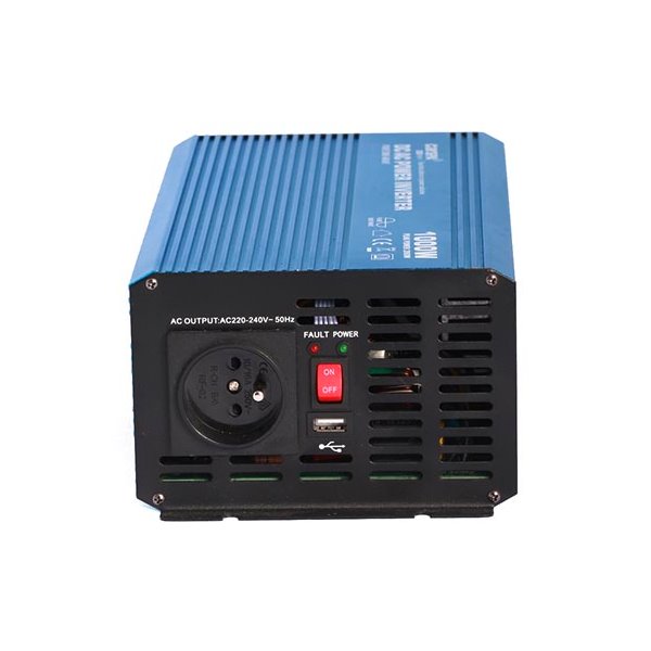 Čistý sinusový měnič vysoké kvality s výkonem 1000 W, který je vhodný pro napájení přístrojů vyžadujících vysoký výkon a čistě sinusový průběh.