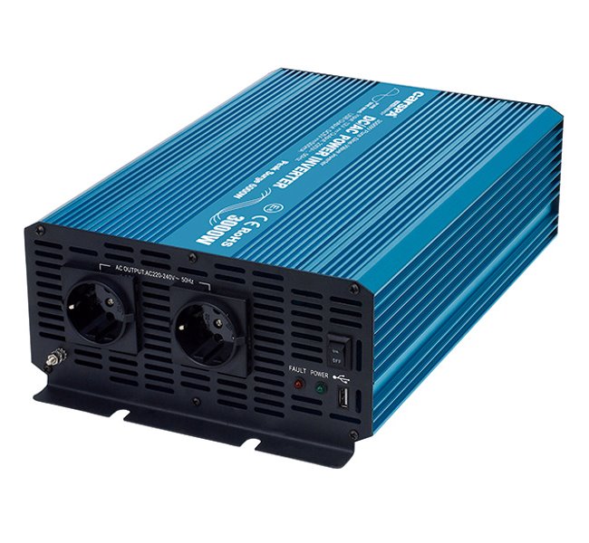 Čistý sinusový měnič vysoké kvality s výkonem 3000 W, který je vhodný pro napájení přístrojů vyžadujících vysoký výkon a čistě sinusový průběh.