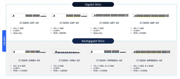 C1300X-10NU-2X ..... Catalyst 1300X 10-port 5GE , UPoE , 2x10G SFP+