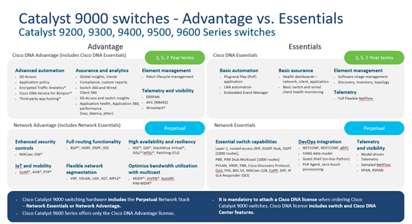 * Cisco IOS XE, moderný operačný systém pre podniky s podporou programovateľnosti založenej na modeloch vrátane NETCONF, RESTCONF, YANG, skriptovania Python v boxe, streamovacej telemetrie, hostingu aplikácií založených na kontajneroch a opráv dôležitých opráv chýb. OS má tiež vstavanú obranu na ochranu pred útokmi za behu