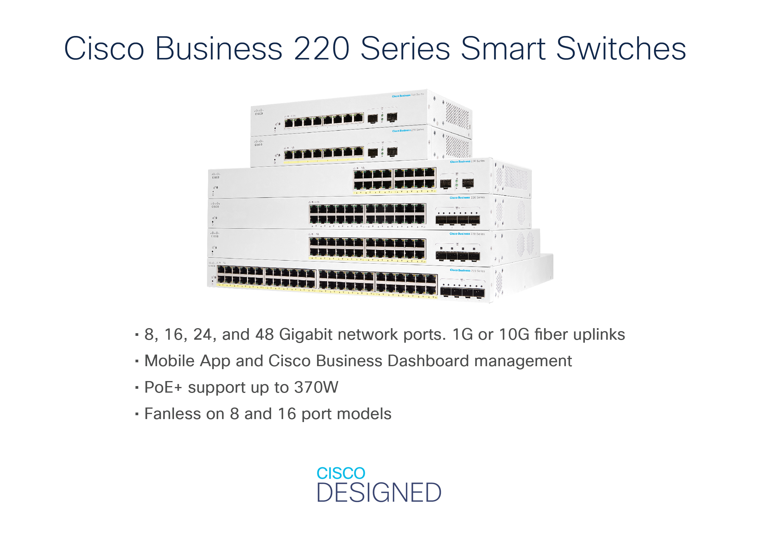 CBS220-24FP-4G - Cisco Business 220 Ethernet Switch Řada Cisco Business 220 jsou cenově dostupné inteligentní přepínače se snadným použitím, zabezpečením a spolehlivostí pro sítě podnikové třídy. Díky intuitivnímu palubnímu panelu, možnostem napájení p...