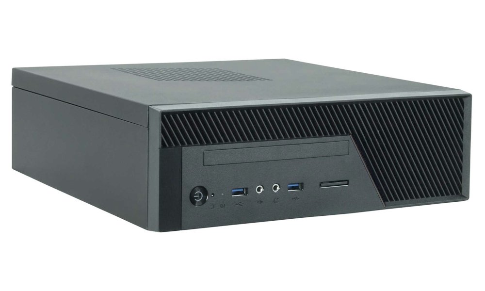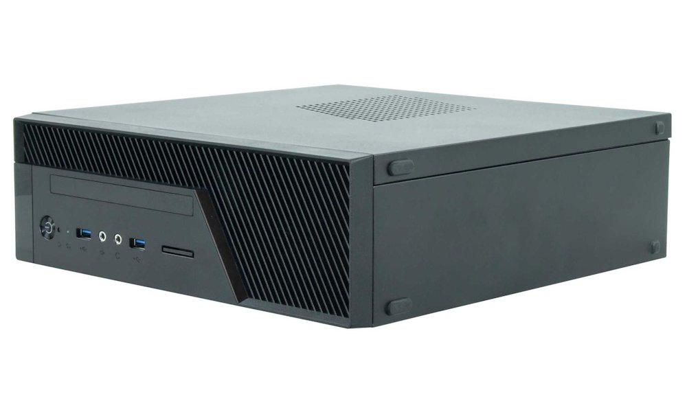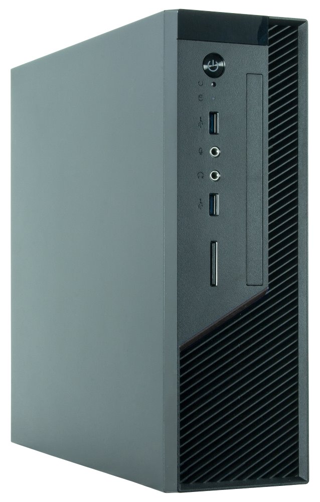 Počítačová skříň formátu Mini ITX nabízí na předním panelu 2 porty USB 3.0, konektor pro sluchátka a konektor pro mikrofon. Dipsonuje jednou externí pozicí formátu 5,25". Skříň je dodávána s 300 W zdrojem GPF-300P.