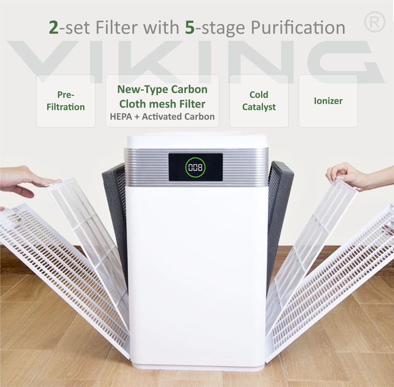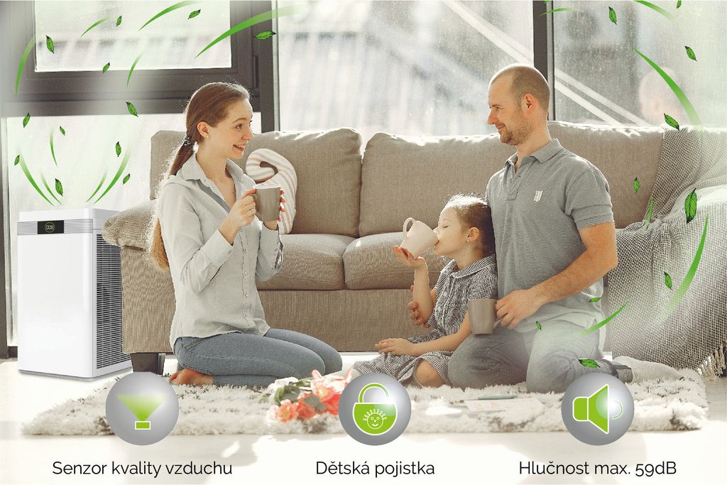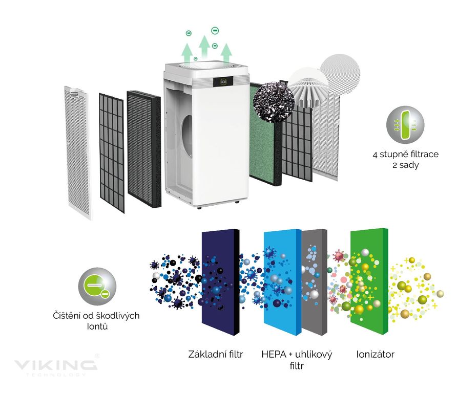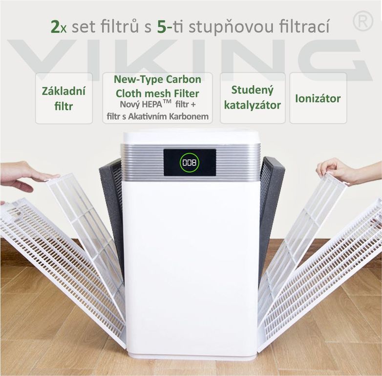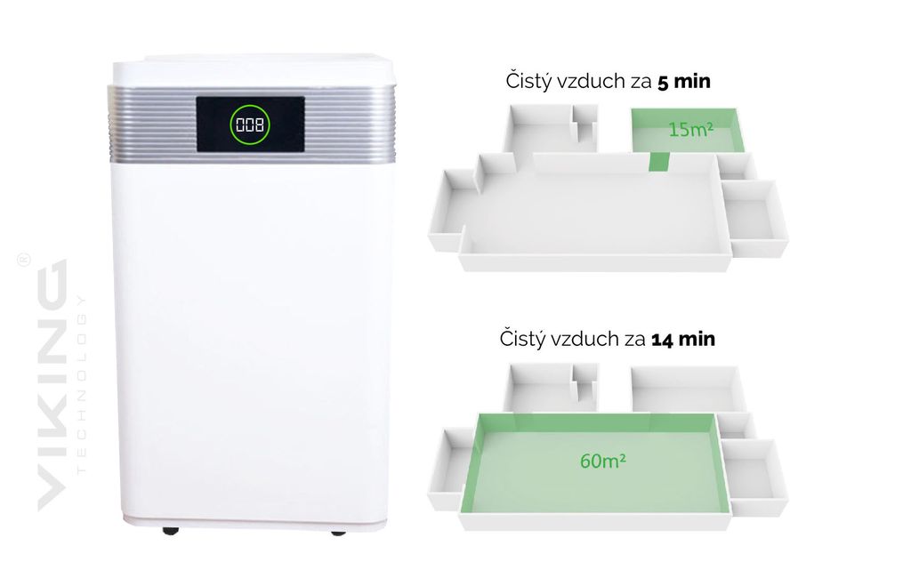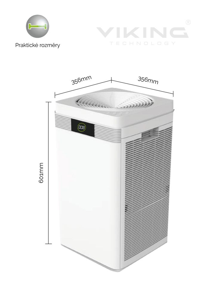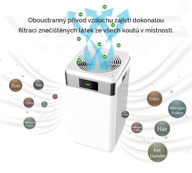ČISTIČKA VZDUCHU VIKING KJ600 • Čistička vzduchu vhodná pro alergiky a lidi trpící nemocí a záněty dýchacích cest. • Dokonalé vyčištění vzduchu i od těch nejmenších částí virů, plísní a alergenů až do velikosti 0,0025mm (2.5µ)! • CADR – vzduchový výkon...