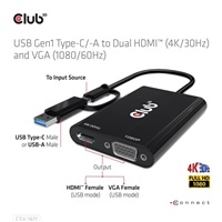 • Club3D adaptér USB Gen1 Type-C/-A to Dual HDMI (4K/30Hz) / VGA (1080/60Hz) CSV-1611
