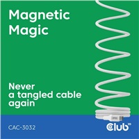 • Club3D Kabel magnetický USB-C, 240W PD3.1, 480 Mbps, 2m, bílá CAC-3032
