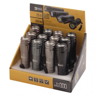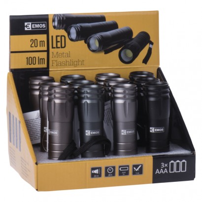 COB LED ručné kovové svietidlo P4705, 100 lm, 3× AAA, 12 ks 8592920042625