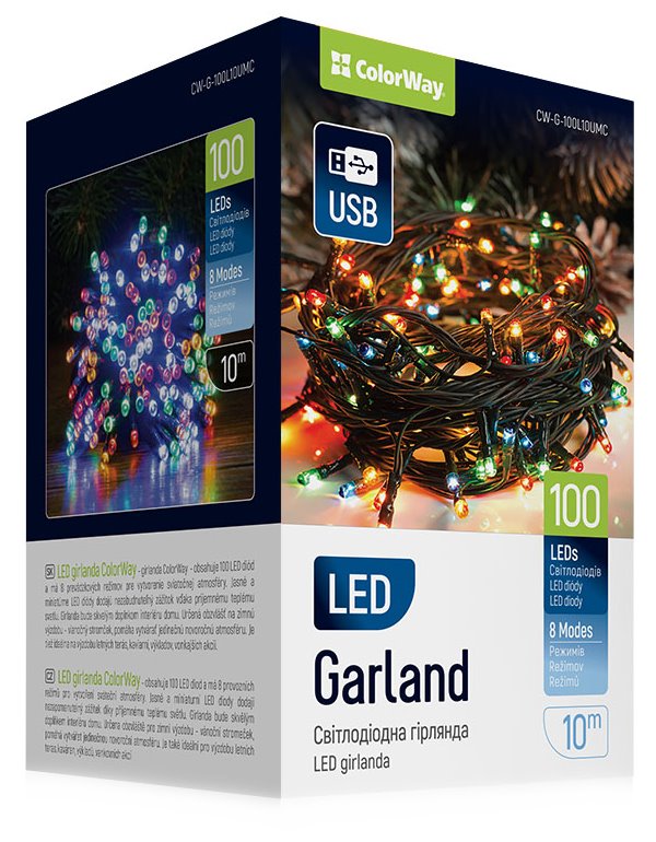 ColorWay CW-G-100L10UMC 10 m; LED řetěz poslouží jako skvělá dekorace pro všechny příležitosti. Skládá se ze 100 LED diod rozmístěných na 10 m dlouhém kabelu. Samozřejmostí je možnost zvolit si je...