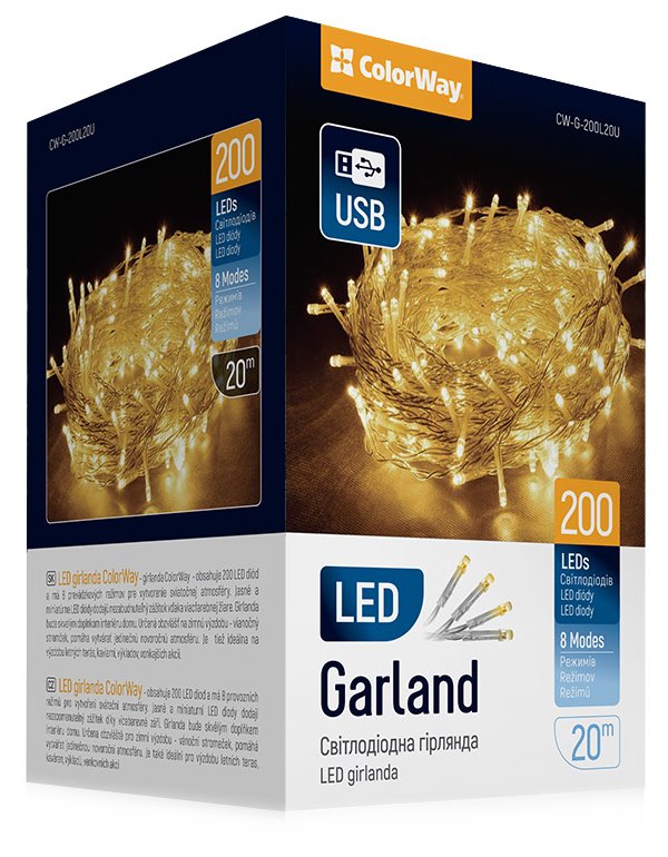 ColorWay CW-G-200L20U 20 m; LED řetěz poslouží jako skvělá dekorace pro všechny příležitosti. Skládá se z 200 LED diod rozmístěných na 20 m dlouhém kabelu. Samozřejmostí je možnost zvolit si jeden...