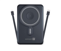 CONNECT IT 10000 mAh bezdrátová Powerbanka 1xUSB-C port/1xUSB-C + 1xLightning kabel VESMÍRNĚ ŠEDÁ