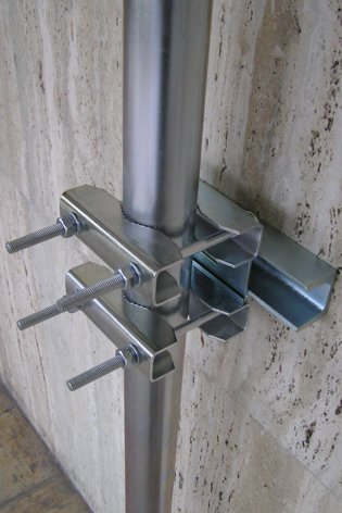 Pre pohodlné uchytenie a montáž odporúčame vratové skrutky DIN603, ktoré môžu mať rôznu dĺžku ( od 120 do 180mm ) v závislosti od toho aký priemer trubky potrebujete uchytiť. Pre trubku s priemerom do 48mm postačia M10x120. Pre väčšie priemery ( max do 65mm ) odporúčame dvojice 2Z7M alebo 2Z7M-80.