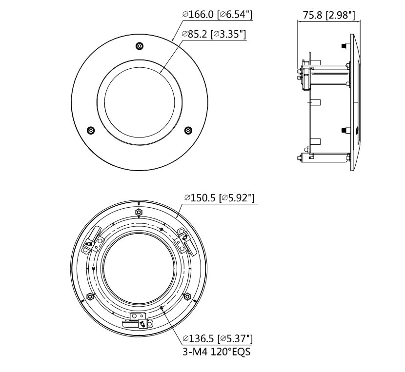 Dahua PFB200C; Stropní držák pro montáž kamer HDBW/E do podhledu. Je určený pro instalaci kamer typu dome a bullet. ZÁKLADNÍ SPECIFIKACE; Kompatibilita: HDBW/E; Veliko...