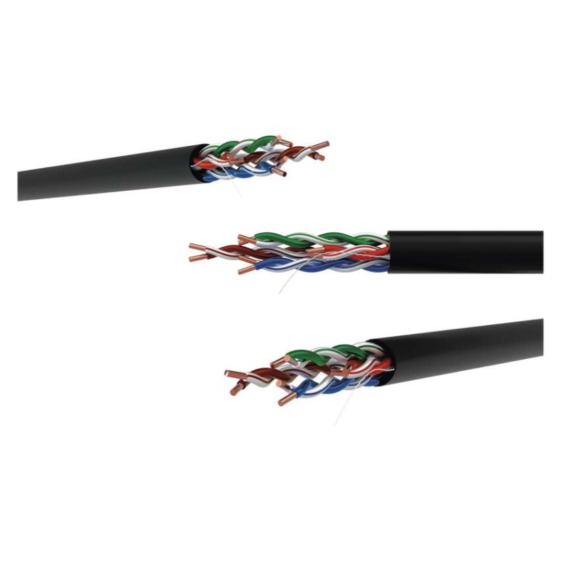 AWG: 24|dĺžka: 305 m|farba plášťa: čierna, čierna|hrúbka izolácie vodičov: 0,22 mm|hrúbka plášťa: 1,1 mm|izolácia vodičov: HDPE|kategória: CAT5E|konštrukcia kábla: drôt|materiál vnútorného vodiča: meď (Cu)|maximálna prevádzková vlhkosť: 93 %|montážna teplota: +5 °C až +60 °C|najvyšší podporovaný protokol: 1000 Base-TX (Gigabit Ethernet)|nebezpečné látky: žiadne|osadené konektory: nie|plášť kábla: PE|plášť so zníženou dymivosťou LSZH (LS0H): nie|počet vodičov: 8|použitie: vonkajšia|predajný obal: 305 m, papierová krabica|priemer kábla: 5–6 mm|priemer vnútorného vodiča: 0,48 mm|produkt: UTP kábel bez konektorov|skladovacia teplota: -20 °C až +60 °C|ťahový prvok: neuvádza sa|tienenie: nie|trieda reakcie na oheň: Eca|typ: UTP CAT 5E PE|typ ochrany konektorov: neuvádza sa|určené pre kábel: neuvádza sa|záručná doba: 25 rokov|značenie kábla: UTP Cat5E PE OUTDOOR 1 – 305 m