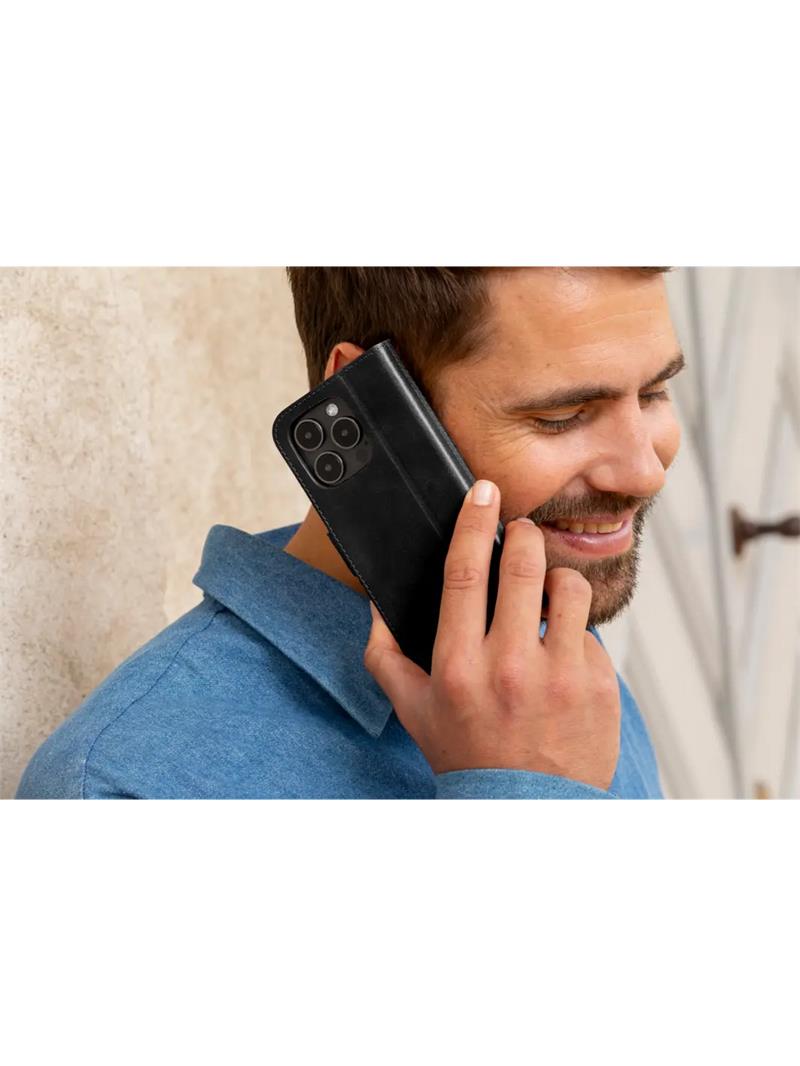 S elegantným a nárazuvzdorným puzdrom na peňaženkou Copenhagen budete mať svoj telefón a peňaženku stále pri sebe. Je ručne vyrobený z udržateľne vyrábanej najkvalitnejšej kože, ktorá si používaním vytvára krásnu patinu a má sklopnú zadnú časť pre horizontálne sledovanie videa bez použitia rúk. Chráňte svoj telefón a našu planétu týmto tenkým puzdrom s množstvom funkcií!