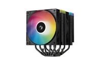 DeepCool AG620 BK ARGB V2 je celý čierny dvojvežový chladič procesora zameraný na vysokú výkonnosť, ktorý sa pýši šiestimi tepelnými trubicami umiestnenými v hustej veži chladiča pre optimálny odvod tepla a je vybavený dvoma ladenými 120mm ventilátormi ARGB PWM pre výkonné chladenie.