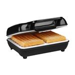 3 v 1 - sendvičovač (trojúhelníky), vaflovač, gril, kombinace nerezu s kvalitním plastem, antiadhezní úprava pracovních desek, automatická regulace teploty, světelná signalizace provozu a dosažení teploty: příkon 900 W