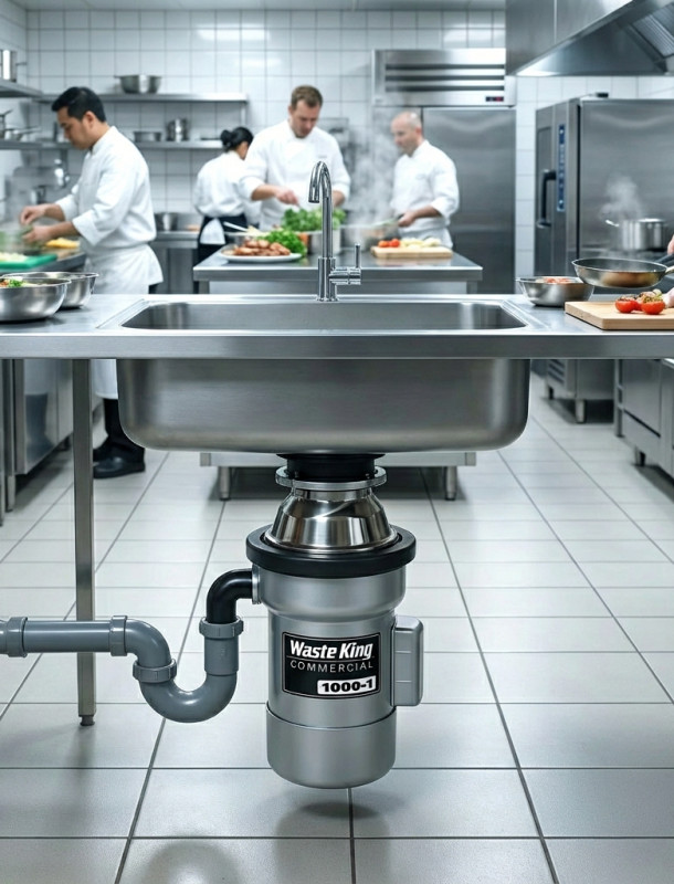 Waste King Commercial 1000 1 nebo 3-fázové provedení. Vhodný pro provozy s četností nepřesahující 1500 jídel. Školy, nemocnice, malé a střední restaurace. Všude tam, kde je problematický kuchyňský odpad o průměrném objemu.