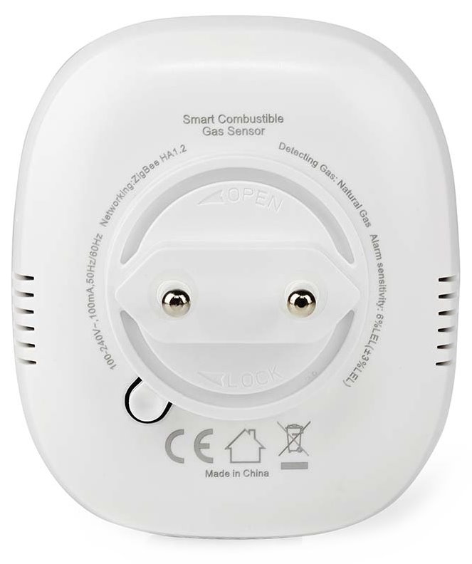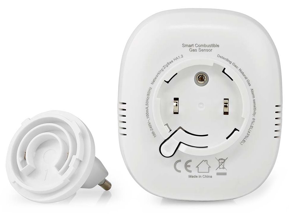 Detektor plynu, pro chytrý dům, 75dB, EN 50194-1:2009, síťové napájení, životnost 5 let, Android a iOS, Zigbee 3.0, bílý
