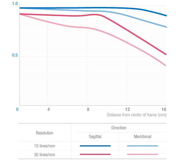 Asférické členy znižujú farebnú aberáciu na zaistenie perfektnej obrazovej kvality a vysokého kontrastu k stredu a rohu snímky aj v prípade plne otvorené clony.