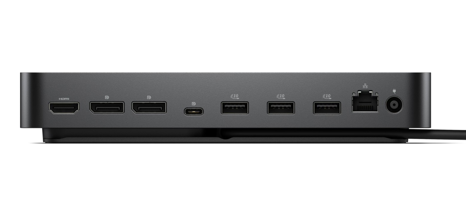 Dokovací stanice podporuje různé konfigurace monitorů: jeden 6K displej při 60 Hz, dva 5K displeje při 60 Hz, tři WQHD displeje při 60 Hz nebo čtyři WQHD displeje při 60 Hz. K dispozici jsou dva DisplayPort 1.4, jeden HDMI 2.1 a jeden USB-C s funkcí DisplayPort 1.4.