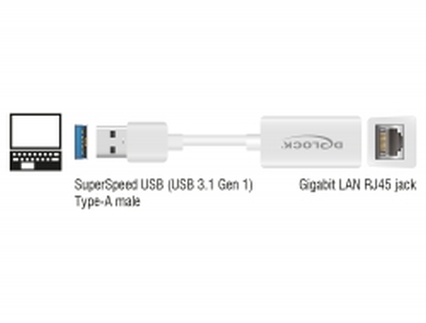 Delock - Síťový adaptér - USB 3.1 Gen 1 - Gigabit Ethernet x 1 - bíláSíťový adaptér - USB 3.1 Gen 1 - Gigabit Ethernet x 1 - bílá