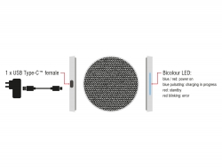 Tato certifikovaná Qi nabíjecí stanice od Delocku může být použita pro bezdrátové nabíjení mobilních zařízení. Přenos energie indukcí eliminuje potřebu kabelů a chrání konektory. Nabíječka podporuje rychlé nabíjení až 7,5 / 10 W s příslušně vybavenými smartphony.