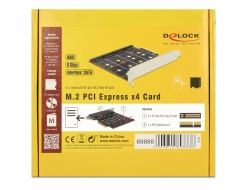 Tato PCI Express karta od Delocku rozšiřije PC o čtyři sloty M.2. Ke kartě mohou být připojeny čtyři moduly M.2 SATA ve formátu 2280, 2260, 2242, 2230. Při použití více jak jednoho SSD, máte možnost použít různé druhy RAID level.